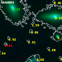 Object #9257 x,y = (3904, 3765) RA, Dec = (04:54:09.864, 02:55:37.92) = (73.54110, 2.92720) BPZ = 1.064 [0.236--2.742] type = 8.70 (SB2_B10 - SB1_B10) chisq2 = 0.00 ODDS = 0.11 z_cluster = 0.203
