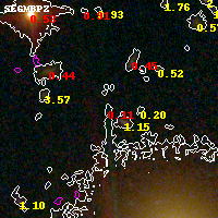 Object #9324 x,y = (2168, 3789) RA, Dec = (04:54:16.824, 02:55:39.36) = (73.57010, 2.92760) BPZ = 0.114 [0.088--0.959] type = 11.00 (SB11_A_0_l) chisq2 = 3.16 ODDS = 0.58 z_cluster = 0.203