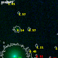 Object #9341 x,y = (5693, 3632) RA, Dec = (04:54:02.688, 02:55:30.00) = (73.51120, 2.92500) BPZ = 0.570 [0.102--3.192] type = 8.10 (SB1_B10 - SB2_B10) chisq2 = 0.00 ODDS = 0.12 z_cluster = 0.203