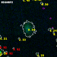 Object #9360 x,y = (5817, 3604) RA, Dec = (04:54:02.208, 02:55:28.20) = (73.50920, 2.92450) BPZ = 0.345 [0.186--0.414] type = 8.10 (SB1_B10 - SB2_B10) chisq2 = 0.00 ODDS = 0.55 z_cluster = 0.203