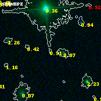 Object #9497 x,y = (3156, 3595) RA, Dec = (04:54:12.864, 02:55:27.84) = (73.55360, 2.92440) BPZ = 0.910 [0.323--4.511] type = 6.70 (Scd_B10 - Sbc_B10) chisq2 = 0.22 ODDS = 0.12 z_cluster = 0.203