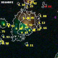Object #9535 x,y = (1857, 3508) RA, Dec = (04:54:18.048, 02:55:22.44) = (73.57520, 2.92290) BPZ = 0.423 [0.045--2.507] type = 8.90 (SB2_B10 - SB1_B10) chisq2 = 0.01 ODDS = 0.29 z_cluster = 0.203