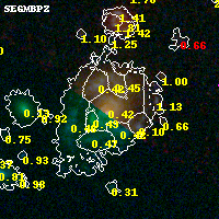 Object #9536 x,y = (1846, 3527) RA, Dec = (04:54:18.096, 02:55:23.88) = (73.57540, 2.92330) BPZ = 0.421 [0.148--0.491] type = 6.40 (Sbc_B10 - Scd_B10) chisq2 = 0.00 ODDS = 0.48 z_cluster = 0.203