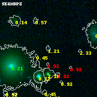 Object #9561 x,y = (5719, 3573) RA, Dec = (04:54:02.592, 02:55:26.40) = (73.51080, 2.92400) BPZ = 1.211 [1.038--2.477] type = 10.80 (SB11_A_0_l - SB3_B10) chisq2 = 0.12 ODDS = 0.23 z_cluster = 0.203