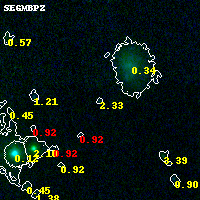 Object #9584 x,y = (5785, 3569) RA, Dec = (04:54:02.328, 02:55:26.40) = (73.50970, 2.92400) BPZ = 2.331 [0.177--3.132] type = 9.20 (SB2_B10 - SB3_B10) chisq2 = 0.00 ODDS = 0.14 z_cluster = 0.203