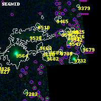 Object #9681 x,y = (7446, 3537) RA, Dec = (04:53:55.680, 02:55:24.24) = (73.48200, 2.92340) BPZ = 0.920 [0.271--10.231] type = 9.80 (SB3_B10 - SB2_B10) chisq2 = 4.67 ODDS = 0.14 z_cluster = 0.203
