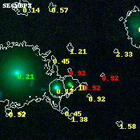 Object #9704 x,y = (5718, 3542) RA, Dec = (04:54:02.592, 02:55:24.60) = (73.51080, 2.92350) BPZ = 0.922 [0.234--3.422] type = 9.70 (SB3_B10 - SB2_B10) chisq2 = 1.58 ODDS = 0.10 z_cluster = 0.203