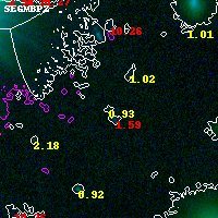 Object #9716 x,y = (5549, 3650) RA, Dec = (04:54:03.264, 02:55:31.08) = (73.51360, 2.92530) BPZ = 0.930 [0.209--2.650] type = 10.50 (SB11_A_0_l - SB3_B10) chisq2 = 0.13 ODDS = 0.10 z_cluster = 0.203