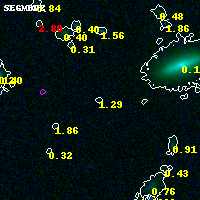 Object #9735 x,y = (3418, 3533) RA, Dec = (04:54:11.808, 02:55:24.24) = (73.54920, 2.92340) BPZ = 1.291 [0.167--3.277] type = 8.40 (SB1_B10 - SB2_B10) chisq2 = 0.01 ODDS = 0.09 z_cluster = 0.203