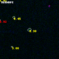 Object #9754 x,y = (4776, 3526) RA, Dec = (04:54:06.360, 02:55:23.52) = (73.52650, 2.92320) BPZ = 0.304 [0.157--3.403] type = 8.20 (SB1_B10 - SB2_B10) chisq2 = 0.07 ODDS = 0.16 z_cluster = 0.203