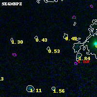 Object #9774 x,y = (7282, 3520) RA, Dec = (04:53:56.328, 02:55:23.16) = (73.48470, 2.92310) BPZ = 0.533 [0.150--3.377] type = 8.80 (SB2_B10 - SB1_B10) chisq2 = 0.04 ODDS = 0.06 z_cluster = 0.203