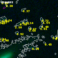 Object #9800 x,y = (4127, 3512) RA, Dec = (04:54:08.976, 02:55:22.80) = (73.53740, 2.92300) BPZ = 3.676 [0.196--4.050] type = 9.90 (SB3_B10 - SB2_B10) chisq2 = 0.32 ODDS = 0.31 z_cluster = 0.203