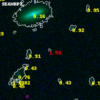 Object #9859 x,y = (3533, 3495) RA, Dec = (04:54:11.352, 02:55:21.72) = (73.54730, 2.92270) BPZ = 1.594 [1.165--2.606] type = 11.00 (SB11_A_0_l) chisq2 = 1.46 ODDS = 0.20 z_cluster = 0.203