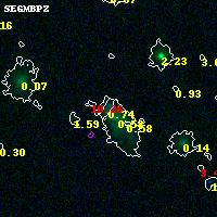 Object #9863 x,y = (3181, 3485) RA, Dec = (04:54:12.768, 02:55:21.36) = (73.55320, 2.92260) BPZ = 0.745 [0.652--2.305] type = 8.00 (SB1_B10) chisq2 = 0.00 ODDS = 0.29 z_cluster = 0.203