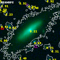 Object #9899 x,y = (4029, 3400) RA, Dec = (04:54:09.360, 02:55:15.96) = (73.53900, 2.92110) BPZ = 0.214 [0.186--0.299] type = 1.60 (Ell6_A_0 - Ell7_A_0) chisq2 = 0.00 ODDS = 0.82 z_cluster = 0.203