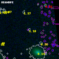 Object #9930 x,y = (7400, 3752) RA, Dec = (04:53:55.848, 02:55:37.20) = (73.48270, 2.92700) BPZ = 1.100 [0.393--2.712] type = 10.50 (SB11_A_0_l - SB3_B10) chisq2 = 0.06 ODDS = 0.10 z_cluster = 0.203