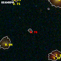 Object #110 x,y = (5211, 1143) RA, Dec = (04:54:04.632, 02:53:00.60) = (73.51930, 2.88350) BPZ = 0.696 [0.231--0.874] type = 9.30 (SB2_B10 - SB3_B10) chisq2 = 1.26 ODDS = 0.47 z_cluster = 0.203