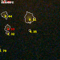 Object #150 x,y = (5555, 1297) RA, Dec = (04:54:03.240, 02:53:09.96) = (73.51350, 2.88610) BPZ = 4.346 [0.233--4.872] type = 9.40 (SB2_B10 - SB3_B10) chisq2 = 0.17 ODDS = 0.47 z_cluster = 0.203
