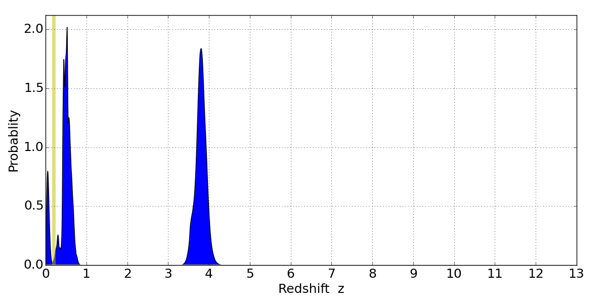 Best viewed in a wide browser window (1200 pixels or more). Download SED & P(z) plots to view larger versions.