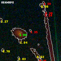 Object #391 x,y = (5802, 1874) RA, Dec = (04:54:02.256, 02:53:44.52) = (73.50940, 2.89570) BPZ = 3.351 [0.149--3.551] type = 9.80 (SB3_B10 - SB2_B10) chisq2 = 1.25 ODDS = 0.54 z_cluster = 0.203