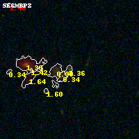 Object #571 x,y = (4548, 2255) RA, Dec = (04:54:07.272, 02:54:07.56) = (73.53030, 2.90210) BPZ = 3.356 [0.272--3.524] type = 9.60 (SB3_B10 - SB2_B10) chisq2 = 0.46 ODDS = 0.78 z_cluster = 0.203