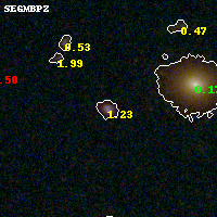Object #578 x,y = (5185, 2268) RA, Dec = (04:54:04.728, 02:54:08.28) = (73.51970, 2.90230) BPZ = 1.230 [1.176--1.355] type = 8.80 (SB2_B10 - SB1_B10) chisq2 = 0.59 ODDS = 0.91 z_cluster = 0.203