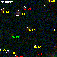 Object #58 x,y = (5925, 923) RA, Dec = (04:54:01.776, 02:52:47.64) = (73.50740, 2.87990) BPZ = 0.567 [0.103--0.896] type = 8.80 (SB2_B10 - SB1_B10) chisq2 = 0.57 ODDS = 0.35 z_cluster = 0.203