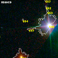 Object #697 x,y = (2679, 4380) RA, Dec = (04:54:14.760, 02:56:15.00) = (73.56150, 2.93750) BPZ = 6.909 [6.374--8.258] type = 11.00 (SB11_A_0_l) chisq2 = 0.72 ODDS = 0.44 z_cluster = 0.203