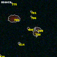 Object #800 x,y = (2030, 4017) RA, Dec = (04:54:17.376, 02:55:53.04) = (73.57240, 2.93140) BPZ = 1.312 [0.297--2.070] type = 8.00 (SB1_B10) chisq2 = 0.37 ODDS = 0.25 z_cluster = 0.203