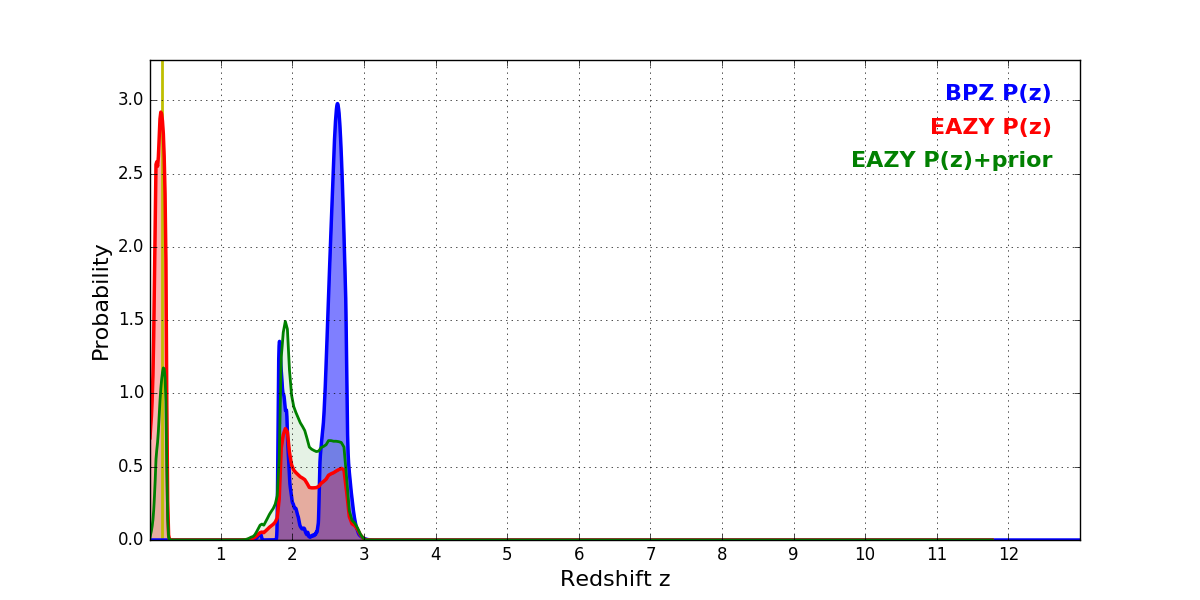 In P(z) plots: Yellow lines mark the cluster redshift z = 0.182,