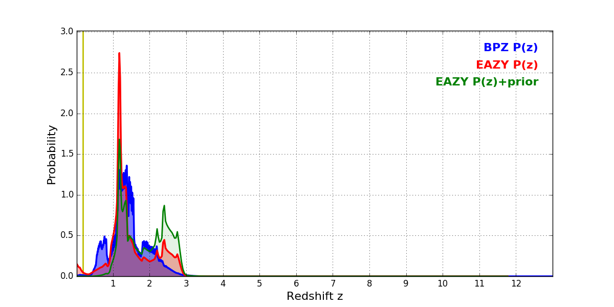 In P(z) plots: Yellow lines mark the cluster redshift z = 0.182,