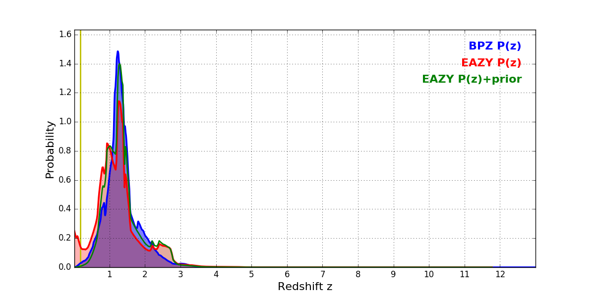 In P(z) plots: Yellow lines mark the cluster redshift z = 0.182,