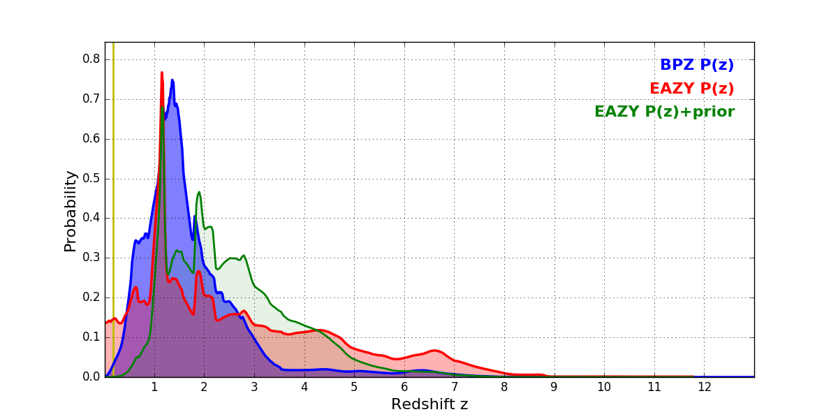 In P(z) plots: Yellow lines mark the cluster redshift z = 0.182,