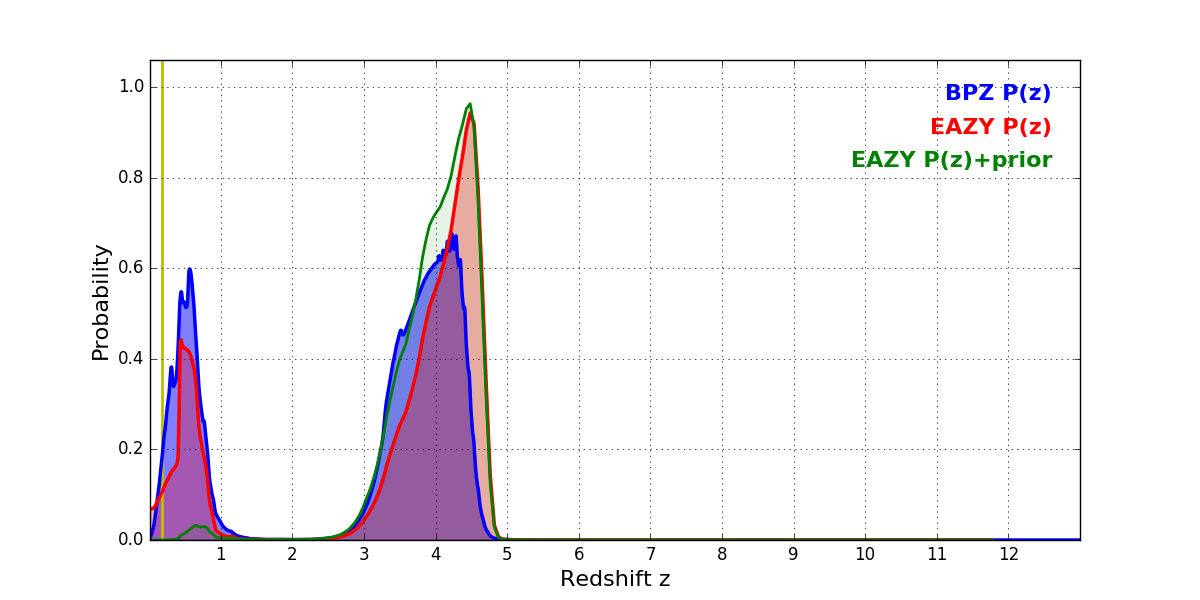 In P(z) plots: Yellow lines mark the cluster redshift z = 0.182,