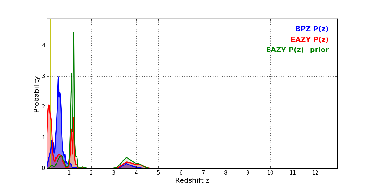 In P(z) plots: Yellow lines mark the cluster redshift z = 0.182,
