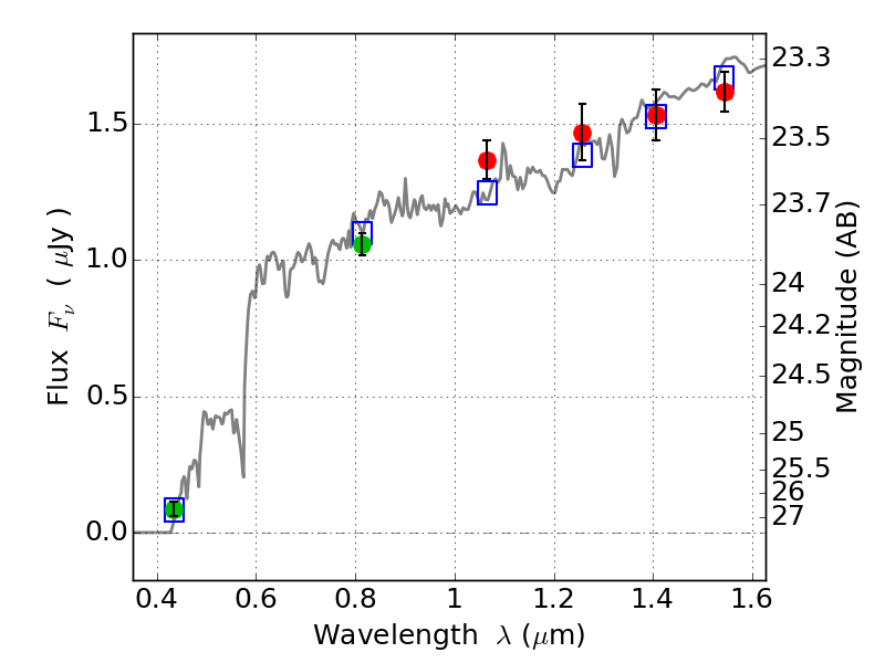 Object #199   x,y = (1731, 3007)   RA, Dec = (08:43:03.048, 36:22:22.08) = (130.76270, 36.37280)   BPZ = 3.735 [0.170--4.769]   type = 8.50 (SB2_B10 - SB1_B10)   chisq2 = 0.49   ODDS = 0.86   z_cluster = 0.282