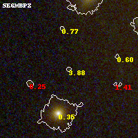 Object #463 x,y = (2614, 2391) RA, Dec = (08:42:58.656, 36:21:45.00) = (130.74440, 36.36250) BPZ = 3.876 [0.262--5.331] type = 9.70 (SB3_B10 - SB2_B10) chisq2 = 0.16 ODDS = 0.24 z_cluster = 0.282
