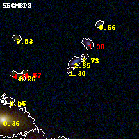 Object #646 x,y = (3509, 1953) RA, Dec = (08:42:54.216, 36:21:18.72) = (130.72590, 36.35520) BPZ = 1.300 [0.396--2.888] type = 7.50 (SB1_B10 - Scd_B10) chisq2 = 0.05 ODDS = 0.15 z_cluster = 0.282