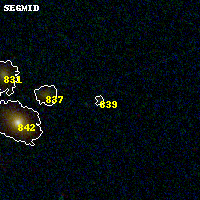 Object #839 x,y = (2815, 1381) RA, Dec = (08:42:57.672, 36:20:44.52) = (130.74030, 36.34570) BPZ = 0.524 [0.136--3.711] type = 9.10 (SB2_B10 - SB3_B10) chisq2 = 0.45 ODDS = 0.16 z_cluster = 0.282