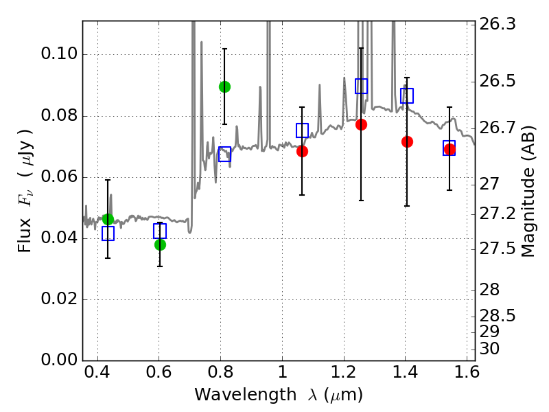 Object #1014   x,y = (2033, 3487)   RA, Dec = (08:43:01.560, 36:22:50.52) = (130.75650, 36.38070)   BPZ = 0.906 [0.163--1.196]   type = 9.80 (SB3_B10 - SB2_B10)   chisq2 = 0.95   ODDS = 0.25   z_cluster = 0.282