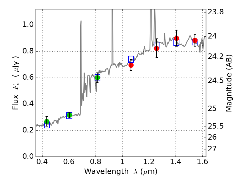 Object #1059   x,y = (2184, 3284)   RA, Dec = (08:43:00.816, 36:22:38.28) = (130.75340, 36.37730)   BPZ = 0.850 [0.615--1.046]   type = 8.80 (SB2_B10 - SB1_B10)   chisq2 = 0.19   ODDS = 0.47   z_cluster = 0.282
