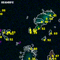 Black segments are analyzed here. Roll mouse over color images to view segments. Best viewed in a wide browser window (1200 pixels or more). Download SED & P(z) plots to view larger versions.