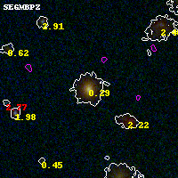 Black segments are analyzed here. Roll mouse over color images to view segments. Best viewed in a wide browser window (1200 pixels or more). Download SED & P(z) plots to view larger versions.
