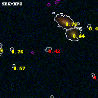 Black segments are analyzed here. Roll mouse over color images to view segments. Best viewed in a wide browser window (1200 pixels or more). Download SED & P(z) plots to view larger versions.