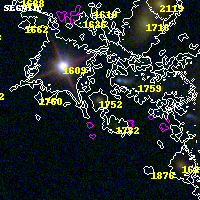 Black segments are analyzed here. Roll mouse over color images to view segments. Best viewed in a wide browser window (1200 pixels or more). Download SED & P(z) plots to view larger versions.