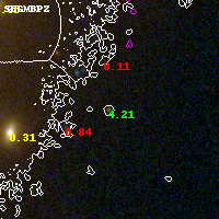 Object #2036   x,y = (3046, 2551)   RA, Dec = (08:42:56.520, 36:21:54.36) = (130.73550, 36.36510)   BPZ = 4.209 [4.008--4.322]   type = 8.10 (SB1_B10 - SB2_B10)   chisq2 = 0.09   ODDS = 0.98   z_cluster = 0.282