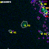 Black segments are analyzed here. Roll mouse over color images to view segments. Best viewed in a wide browser window (1200 pixels or more). Download SED & P(z) plots to view larger versions.