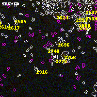 Object #2740   x,y = (2582, 2192)   RA, Dec = (08:42:58.824, 36:21:32.76) = (130.74510, 36.35910)   BPZ = 2.138 [1.575--2.659]   type = 11.00 (SB11_A_0_l)   chisq2 = 5.98   ODDS = 0.34   z_cluster = 0.282