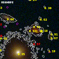 Black segments are analyzed here. Roll mouse over color images to view segments. Best viewed in a wide browser window (1200 pixels or more). Download SED & P(z) plots to view larger versions.