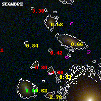 Black segments are analyzed here. Roll mouse over color images to view segments. Best viewed in a wide browser window (1200 pixels or more). Download SED & P(z) plots to view larger versions.